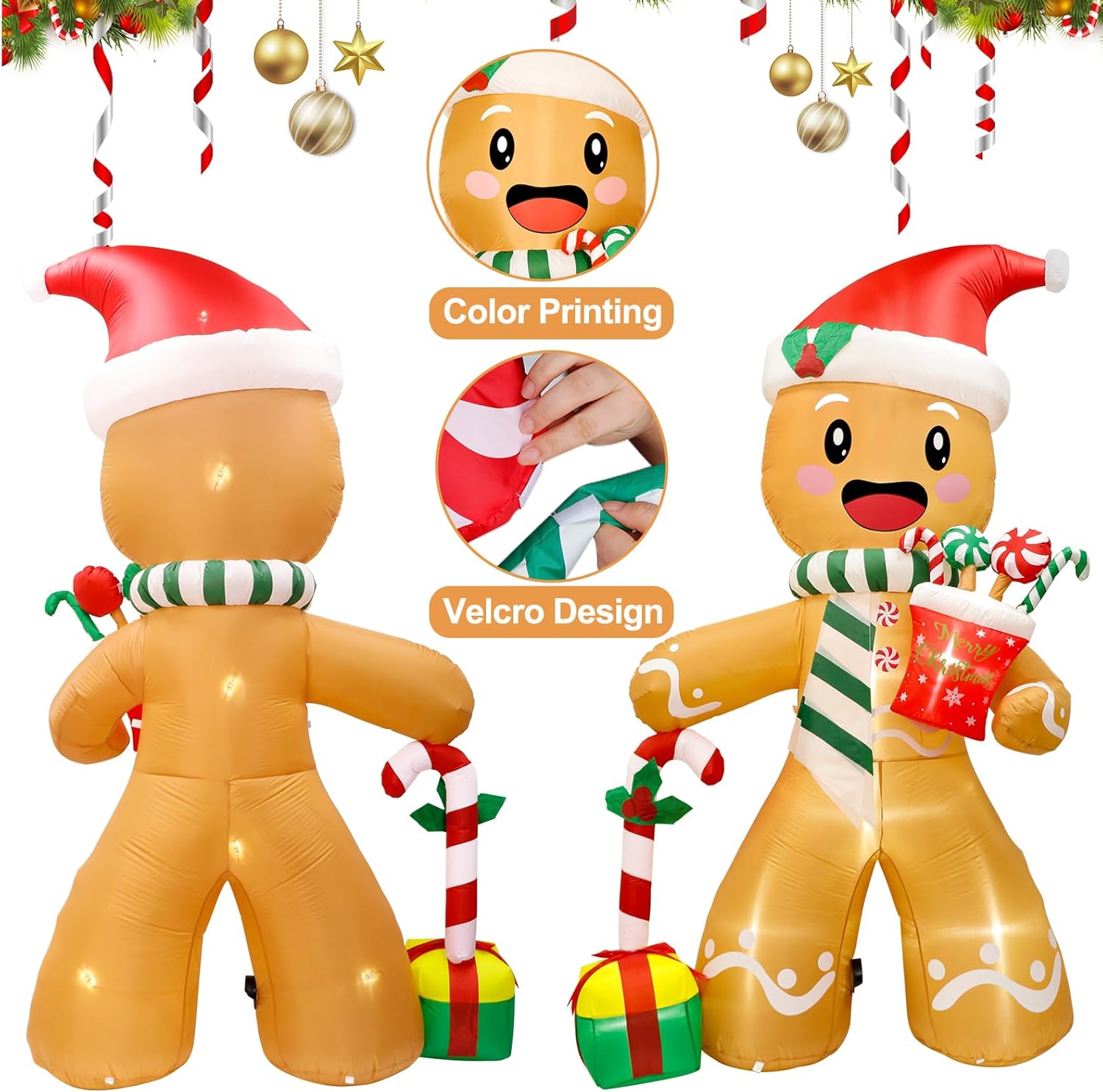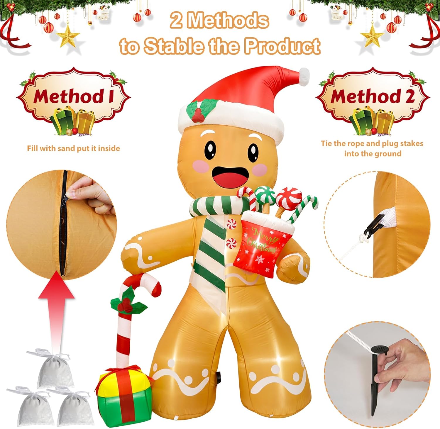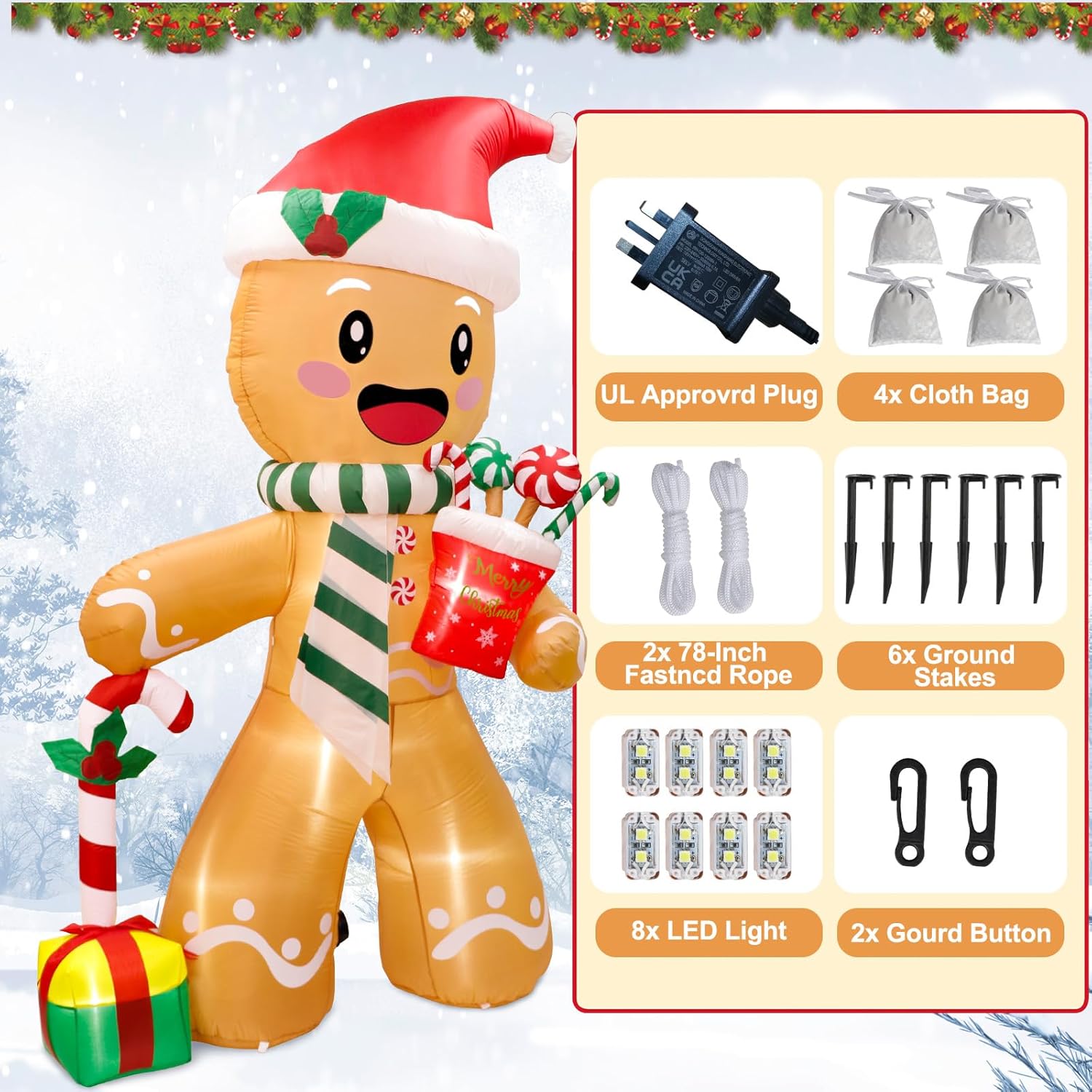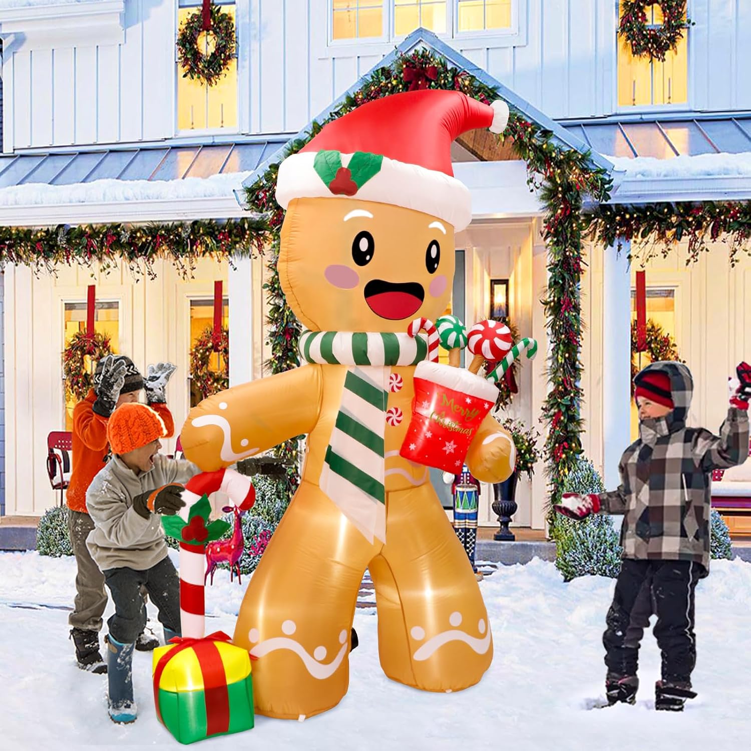 Crea una Navidad mágica y divertida con este hombre de jengibre inflable de 2.4 m (8 pies). Su expresión alegre y su gran tamaño atraerán las miradas de niños, vecinos e invitados, convirtiéndose en el centro de atención de tu decoración navideña.